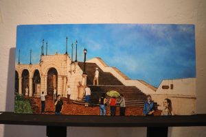 La muestra reúne 85 obras en pintura cerámica y acrílica que capturan calles, parques, monumentos y rincones emblemáticos del Casco Antiguo, fruto de una observación constante que el artista realiza desde 1980 sobre los espacios y la arquitectura del lugar.
